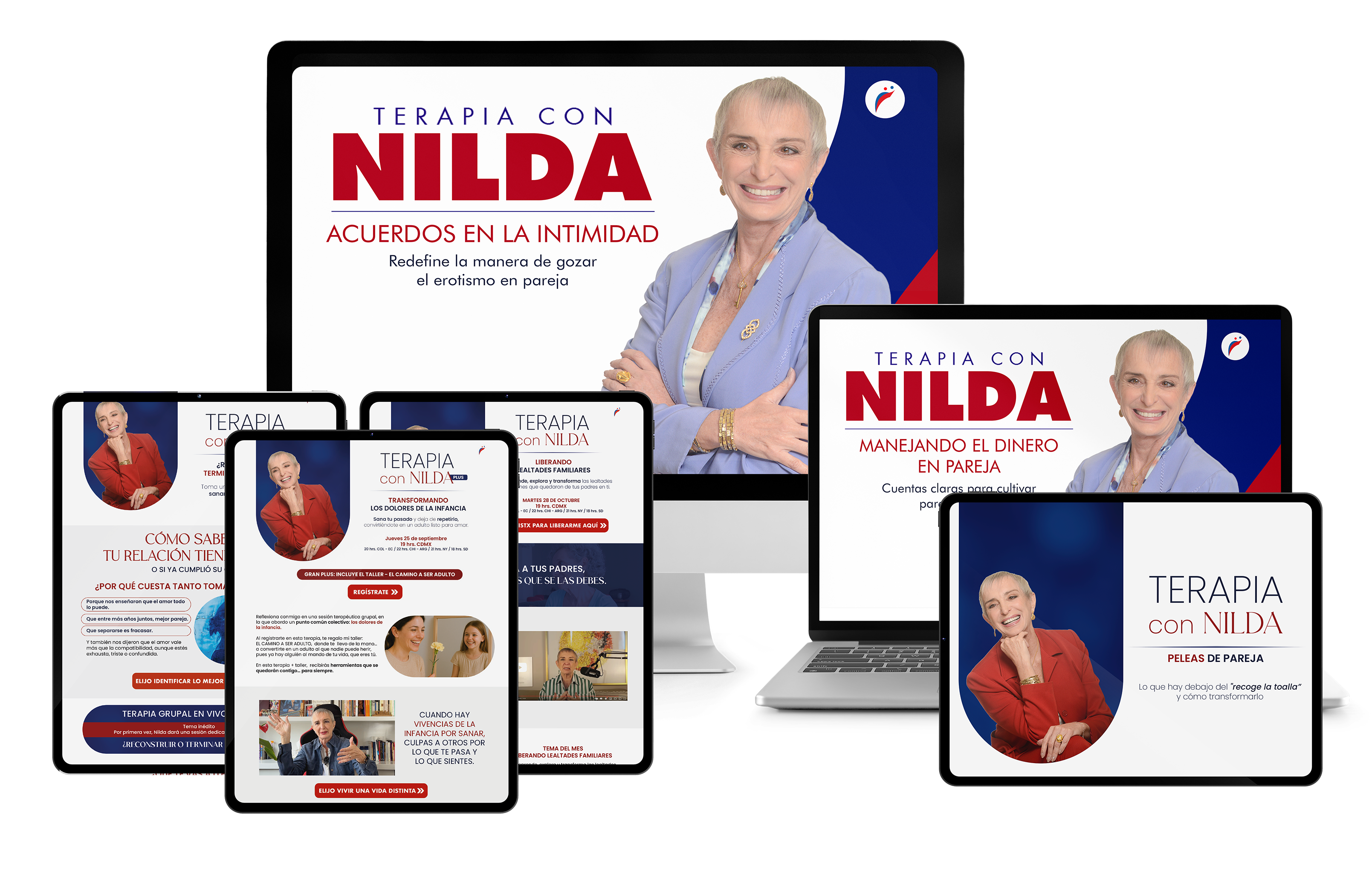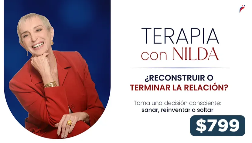 6 terapias con Nilda (grabadas): dolores de la infancia, peleas de pareja, lealtades familiares, dinero en pareja, reconstruir/terminar, acuerdos en la intimidad.